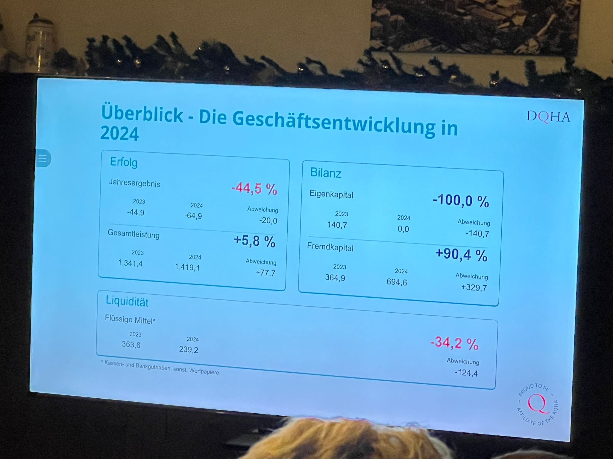 Auf Nachfrage von anwesenden Mitgliedern bescheinigte der Steuerberater der DQHA damit dem Verband zum Ende des Geschäftsjahr 2024 eine „bilanzielle Überschuldung“: