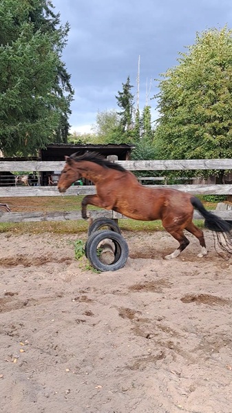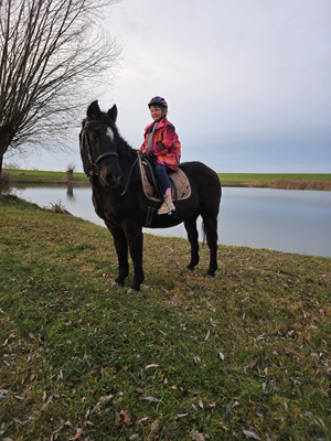 Als Jährling gekauft kam sie 1995 nach Deutschland. Beim Reiten