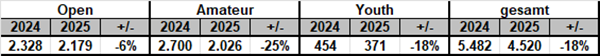 Zum Vergleich: Die EWU German Open 2025 in Kreuth hatte 314 Jugendstarts.